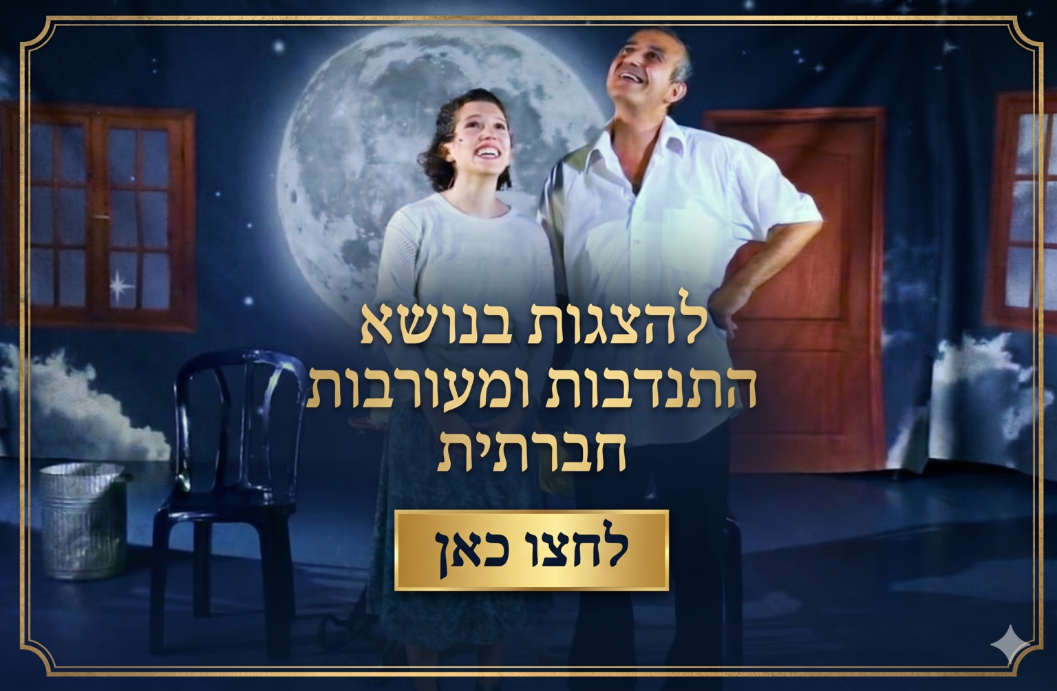 לרשימת ההצגות המלאה הזמינו כעת את ההצגה המתאימה לכם להזמנה תגובות הצופים לצפיה ולקריאת התגובות יצירת קשר שם פרטי ושם משפחה אימייל טלפון ההודעה שלך - יש להקפיד לרשום את שם ההצגה שליחה כתוב את הכותרת כאן כותרת אלמנטלורם איפסום דולור סיט אמט, קונסקטורר אדיפיסינג אלית לפרומי בלוף קינץ תתיח לרעח. לת צשחמי צש בליא, מנסוטו צמלח לביקו ננבי, צמוקו בלוקריה. כתוב את הכותרת כאן